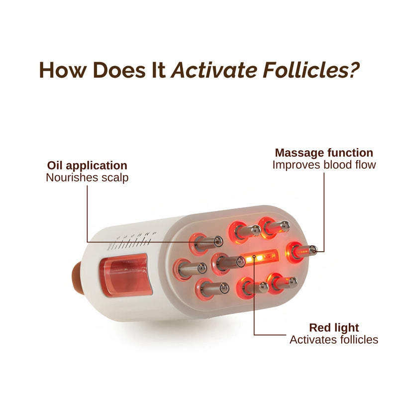 Our unique Activator device works synergistically with the oil, stimulating your scalp and boosting nutrient absorption. It's like a spa treatment for your hair, right at home.